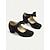 décolleté mary jane vintage anni '50 da donna: eleganti tacchi a blocco in similpelle verniciata nera con finiture smerlate per feste retrò, eventi rockabilly &stile di metà secolo