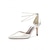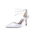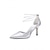 scarpe da sposa eleganti con punta affilata in raso argentato e cinturini alla caviglia con perle, per matrimoni in spiaggia