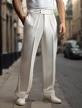 Per uomo Pantaloni Eleganti Pantaloni Chinos Pantaloni a Nido d'Ape Tasca Bottoni Jacquard Semplice Comodità Formale Feste Lavoro Moda Stile Classico Nero Bianco Micro-elastico