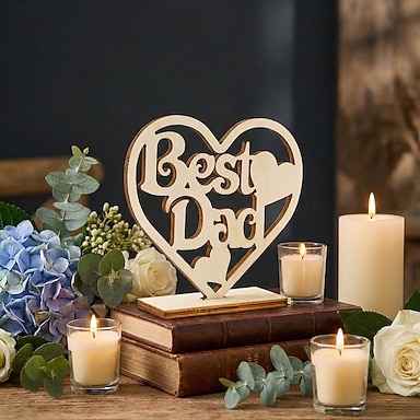 Targa in legno per la festa del papà con la scritta "Best Dad" e un cuore decorativo, targa da tavolo in legno cavo, regalo per papà, decorazione rustica per la casa e l'ufficio, ideale per la vetrina