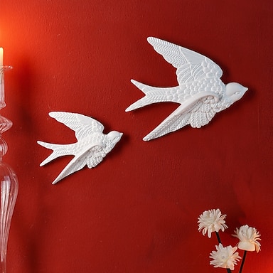 Cigno volante decorativo da appendere alla parete, in resina, articolo da appendere all'interno per la decorazione della parete di casa, hotel, matrimoni, adatto per l'uso durante tutto l'anno.