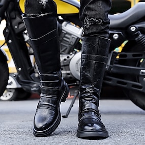 stivali da motociclista in similpelle nera da uomo con cinturini: eleganti e robusti, ideali per motociclisti e per l'abbigliamento casual di tutti i giorni