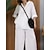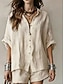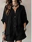 Per donna Set di Pantaloni Finto cotone e lino Manica Corta Colletto a Camicia Semplice Arricciato Coulisse Elegante Moda Streetwear Casuale Quotidiano All'aperto Nero Bianco Grigio Estate