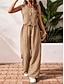 Set in Lino Sintetico Simile al Cotone per Donna Senza Maniche Collo a V Semplice Elegante Moda Streetwear Casual Quotidiano Esterno Nero Verde Militare Khaki Estate Vestibilità Regolare