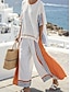 Per donna Set di Pantaloni Finto cotone e lino Manica 3/4 Scollo a V Semplice Arricciato Patchwork Elegante Moda Streetwear Casuale Quotidiano All'aperto Nero Bianco Blu marino scuro Estate