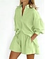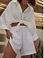 Per donna Camicia Set da due pezzi Set di Pantaloncini Manica Lunga Colletto a Camicia Tinta unica Moda Streetwear Casuale Quotidiano All'aperto Blu Bianco Blu marino Estate Vestibilità comoda
