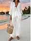 Per donna Set di Pantaloni Bolero Top Finto cotone e lino Manica 3/4 Scollo a V Tinta unica Attivo Vacanza Quotidiano Casuale Quotidiano All'aperto Bianco Cachi Estate Vestibilità regolare