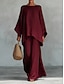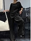 Per donna Set di Pantaloni Finto cotone e lino Manica Lunga Girocollo Tinta unica Moda Streetwear Casuale Quotidiano All'aperto Nero Bianco Vino Primavera & Estate Vestibilità comoda