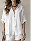 Per donna Camicia Camicie di cotone e lino Blusa Manica Lunga Colletto a Camicia Tinta unica Coulisse Attivo Essenziale Vacanza Ferie Nero Giallo Rosa Estate Vestibilità regolare