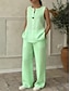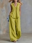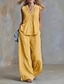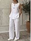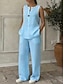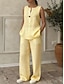 Per donna Set di Pantaloni Finto cotone e lino Senza Maniche Girocollo Tinta unica Moda Streetwear Casuale Quotidiano All'aperto Blu Bianco Giallo Primavera & Estate Vestibilità comoda