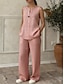 Per donna Misto cotone Set ispirati al lino Set da due pezzi Senza Maniche Spallina Tinta unica Arricciato Attivo Essenziale Vacanza Uscire Rosa Verde Cachi Estate Vestibilità regolare