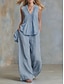 Per donna Set di Pantaloni Finto cotone e lino Senza Maniche Scollo a V Tinta unica Moda Streetwear Casuale Quotidiano All'aperto Blu Nero Bianco Primavera & Estate Vestibilità comoda
