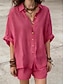 Per donna Set di Pantaloni Finto cotone e lino Manica Lunga Colletto a Camicia Tinta unica Semplice Moda Streetwear Casuale Quotidiano All'aperto Viola Estate Vestibilità regolare