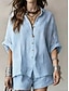 Per donna Set di Pantaloni Bolero Top Finto cotone e lino Manica Lunga Scollo a V Tinta unica Moda Streetwear Casuale Quotidiano All'aperto Blu Estate Vestibilità regolare