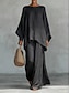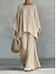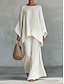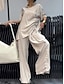Per donna Set di Pantaloni Finto cotone e lino Manica 3/4 Girocollo Tinta unica Moda Streetwear Casuale Quotidiano All'aperto Nero Bianco Cachi Estate Vestibilità regolare