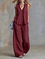 Per donna Misto cotone Set ispirati al lino Set da due pezzi Senza Maniche Scollo a V Tinta unica Allacciato Attivo Essenziale Casual Quotidiano Bianco Vino Blu marino scuro Estate Vestibilit