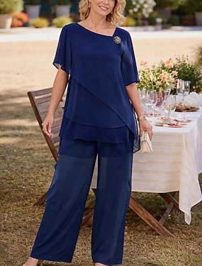 Per donna Set di Pantaloni Manica 3/4 Monospalla Tinta unica Stratificato Elegante Moda Streetwear Casuale Quotidiano Nero Bianco Vino Primavera Vestibilità regolare