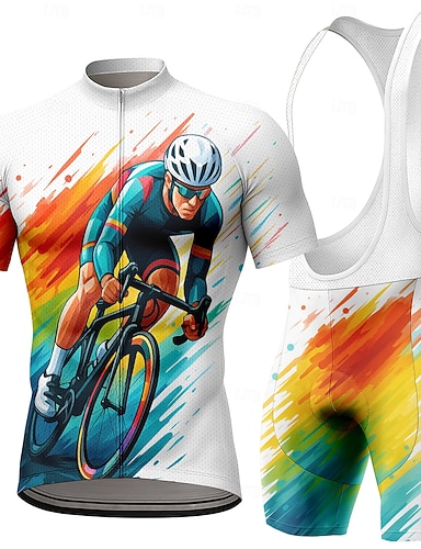Per uomo Maglia da ciclismo con pantaloncini con bretelle Manica Corta Mountain Bike MTB Ciclismo su strada Estate Primavera Bianco Rosso Blu Grafico Divertente Bicicletta Cuscinetto 3D Asciugatura