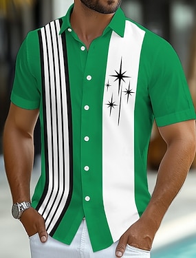Cappello da cartone di San Patrizio con maglietta a righe maglietta estiva hawaiana a manica corta moda tropicale outdoor giorno di San Patrizio estate primavera stampa a cascata bottoni nera bianca