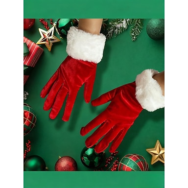 guanti natalizi da donna in velluto con polsini in pelliccia sintetica, guanti rossi per le feste, perfetti per feste invernali ed eventi natalizi