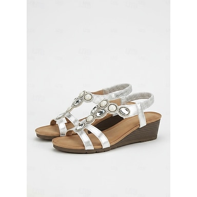 sandali con zeppa comodi con strass argentati da donna – scarpe estive glamour con punta aperta per feste, matrimoni e occasioni informali