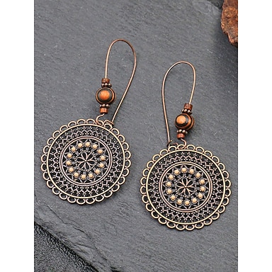 orecchini pendenti rotondi in lega e legno da donna, design vintage boho mandala, stile leggero e distintivo, perfetti per l'abbigliamento casual quotidiano, le vacanze al mare e gli outfit estivi