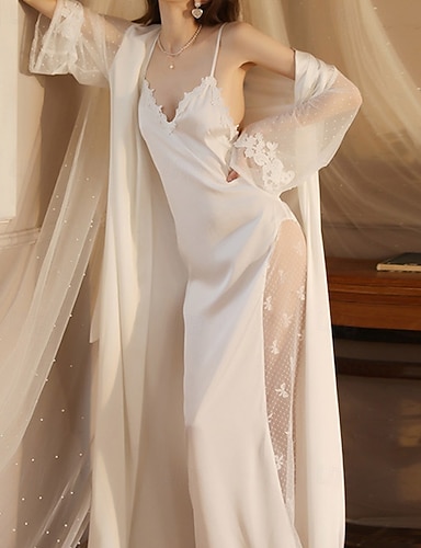Per donna Accappatoio Casual Morbido Raso Colore Puro Patchwork Rete Quotidiano Casa Da letto Manica Lunga Scollo a V Nero Bianco Vino Estate Vestibilità comoda