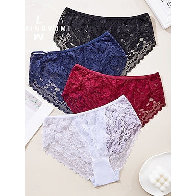 Per donna Mutandine Pizzo Elastico in vitaNightwearSpandex Nylon Casuale Tinta unita Moda Carino Nero Bianco Rosso Blu marino Primavera & Estate