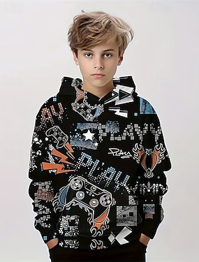 Da ragazzo 3D Pop art Giochi Felpa con cappuccio Manica lunga Primavera Autunno Di tendenza Streetwear Bambino 4-12 anni Con cappuccio Esterno Informale Giornaliero Standard