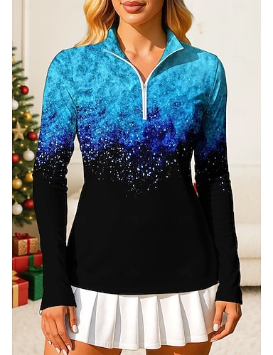 Per donna Sfumatura Felpa Polo Top Maglietta Maglietta sportiva Manica Lunga Stampato Zip a un quarto Pullover UPF50+ Resistente ai Raggi UV Protezione UV Elastico Traspirante Pallavolo Tennis Golf