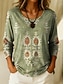 Per donna Maglietta Grafico Piante Vintage Elegante Classico Manica Lunga Scollo a V Collo a V Top Regolari Quotidiano Stampato Nero Blu Primavera Autunno