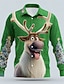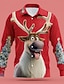 Natale Per uomo Renna Polo Manica Lunga Collo ripiegato Moderno Tempo libero Sport & Outdoor Athleisure Festival Cerniera Stampa 3D Primavera Autunno Inverno Nero Rosso Blu