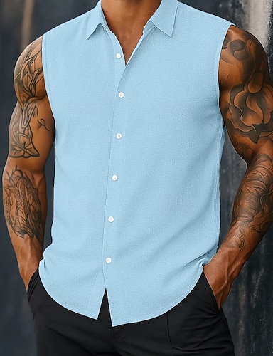 Per uomo Camicia Camicia di lino Camicia Estiva Abbigliamento da spiaggia Maglietta senza maniche Tinta unica Vacanza Streetwear Nero Bianco Blu marino Azzurro cielo Senza Maniche Colletto a Camicia