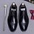 Mocassini da uomo in pelle verniciata nera, modello slip-on a punta, con ricami e fibbia in metallo, ideali per matrimoni, banchetti, feste, balli di fine anno, discoteche e serate eleganti.