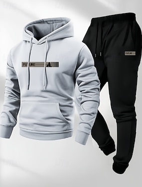 Per uomo Tuta da 2 pezzi Pantaloni sportivi da tuta Felpa con cappuccio con tasca Tinta unita Completo Abbigliamento Autunno / Inverno Grigio scuro Nero Palestra Escursionismo Allenamento Traspirante
