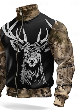 Per uomo Cowboy Cervo Felpe con cappuccio Quotidiano Casual Vintage Retrò Manica Lunga Con Cappuccio Vacanza Sport all'Aperto Abbigliamento casual alla moda Nero Giallo Marrone Stampato Tasca Frontale