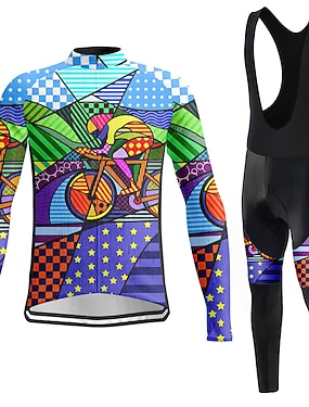 Per uomo Maglia da ciclismo con pantaloni Manica Lunga Inverno Autunno Blu Giallo Vino Grafico Geometrico Bicicletta Calore Termico Cuscinetto 3D Asciugatura Rapida Design Anatomico Resistente ai