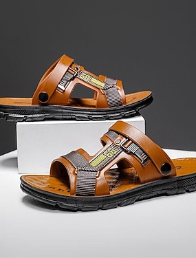 sandali da uomo in similpelle marrone con cinturino e fibbie regolabili - comode calzature estive casual da esterno