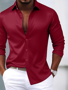 Per uomo Camicie Camicia con colletto Camicia con bottoni Liscio Matrimonio Ufficio blu navy Nero rosso Bianco Blu Manica corta Colletto Abbigliamento