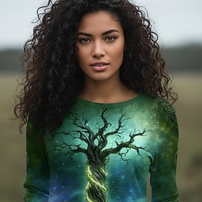 Per donna Maglietta Stampato Grafico Piante Tribale Vintage Elegante Classico Manica Lunga Scollo a V Top Regolari Quotidiano Nero Primavera Autunno Inverno
