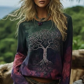 Per donna Maglietta Stampato Grafico Piante Tribale Vintage Elegante Casual Manica Lunga Scollo a V Collo a V Top Regolari Quotidiano Weekend Blu Viola Primavera Autunno Inverno