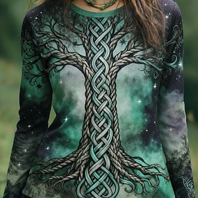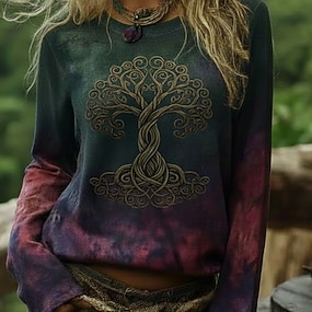 T-shirt Boho Viking Donna Grafica Tribale Vintage Moda Elegante Manica Lunga Collo Rotondo Top Regolari Quotidiani Weekend Stampa Marrone Estate Primavera Autunno Inverno