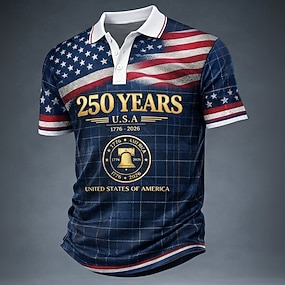 4 luglio 2026 250° Giorno della Memoria Maglietta a Maniche Corte Henley Bandiera Nazionale Grafica Maschile Casual Outdoor Quotidiana Sport