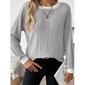 Per donna Blusa Patchwork Tinta unica Quotidiano Casual Manica Lunga Girocollo Top Regolari Quotidiano Blu Nero Grigio scuro Grigio Estate Primavera Autunno