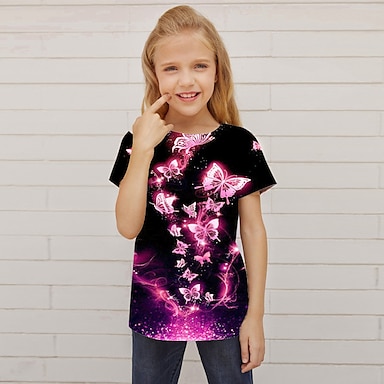 Ragazze 3D Farfalla Maglietta Manica Corta Estate Primavera Moda Essenziale Bambini 4-12 Anni Girocollo All'aperto Casuale Quotidiano Vestibilità regolare