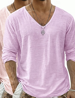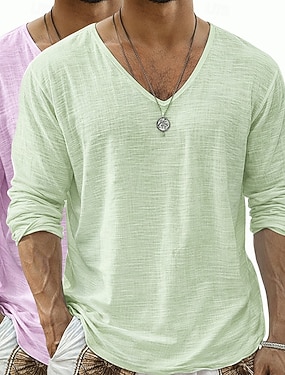 Per uomo Maglietta Maglietta in lino Manica Lunga Scollo a V Estate Primavera Primavera & Estate Tinta unica Semplice Quotidiano Casual Stile da Strada Puro Casuale All'aperto Streetwear Blu azzurro