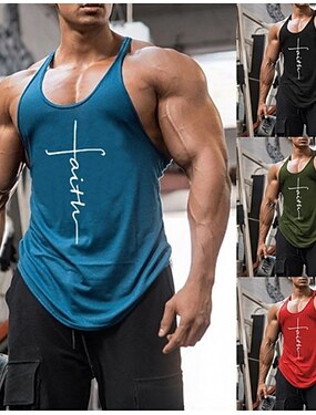 Per uomo Lettera Fede Canotta Maglietta smanicata Canottiera Stile casual Stile classico Senza Maniche maglietta Girocollo Camicia Sport Leggero Grande e Alto Vacanza Casuale Quotidiano Nero Rosso Blu
