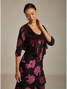 Per donna Bolero Floreale Elegante Vintage Manica 3/4 Scollo a V Festa serale Ospite di nozze Abbigliamento da sera Vino Autunno Inverno