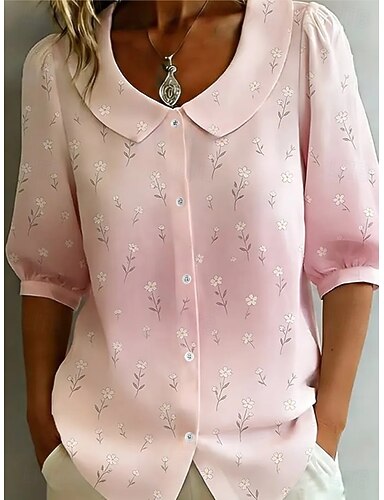 Per donna Camicia Stampato Floreale Grafico Vacanza Casual Boho Mezza Manica Girocollo Collare Peter Pan Top Regolari Casuale Quotidiano Rosa Estate Primavera