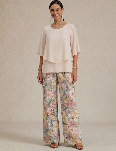 Per donna Set di Pantaloni Mezza Manica A farfalla Girocollo Floreale Grafico Elegante Vacanza Casuale Quotidiano Ospite di nozze Blu Rosa Viola Primavera & Estate Vestibilità regolare